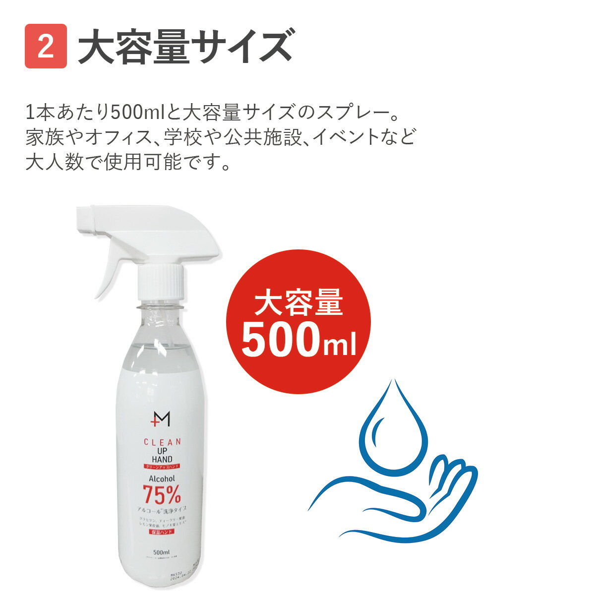 アルコール アルコールスプレー スプレー 手 手指 ハンド ハンドスプレー 2本 セット 500ml アルコール度数75% 大容量 速乾性 ハンドウォッシュ マスク 【予約 5月下旬 随時発送予定】 【返品不可】