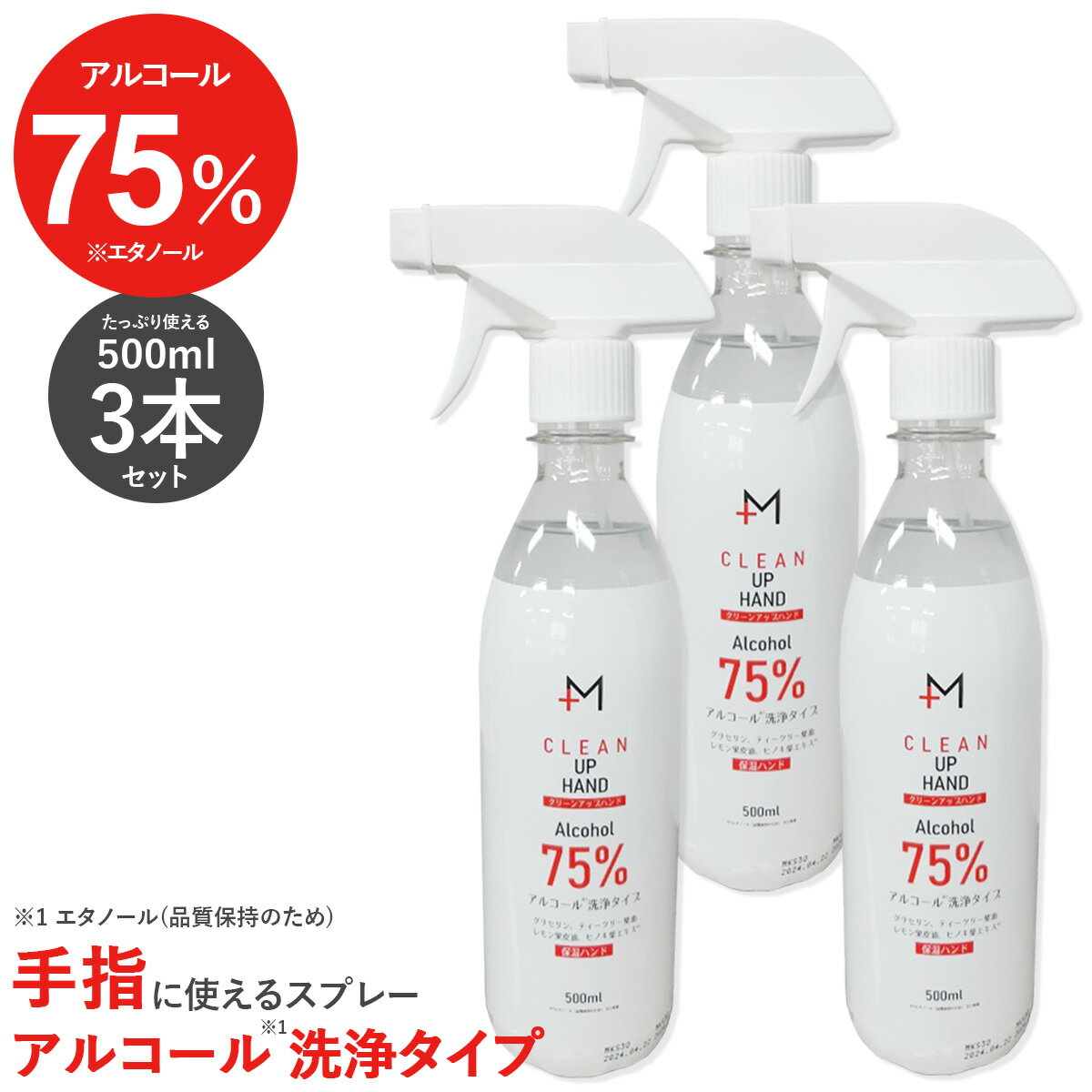 アルコール アルコールスプレー スプレー 手 手指 ハンド ハンドスプレー 3本 セット 500ml アルコール度数75% 大容量 速乾性 ハンドウォッシュ マスク 【予約 5月下旬 随時発送予定】 【返品不可】