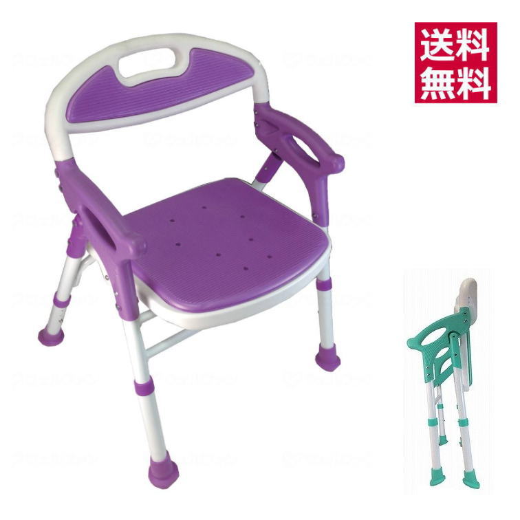 【折り畳み風呂椅子】シャワーチェア 楽湯 7550ST(島製作所) パープル/ライトグリーン 背もたれ付き 肘掛け付き 【送料無料】