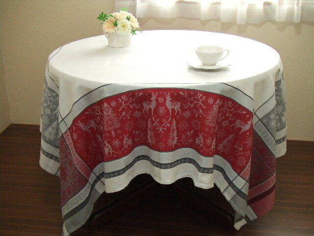 【フランス直輸入】撥水加工ジャガード織テーブルクロス(160×160cm)フォレブランシュ 赤/グレー 正方形【130206_free】【HLS_DU】
