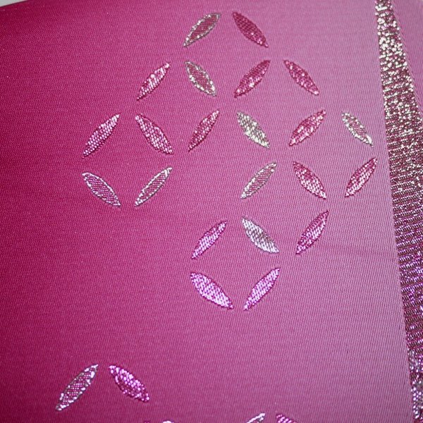 半幅帯 -62- 長尺 浴衣帯 麻100% リバーシブル 刺繍 なでしこ パープル系/白 日本製